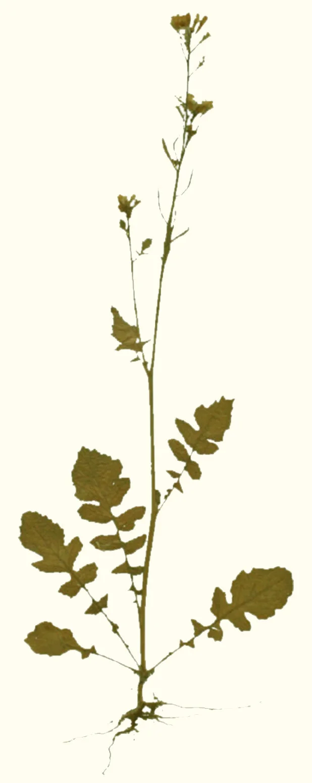 Figure 4 continued. A pressed flowering specimen of wild radish showing the different forms of the leaves on the main stem.
